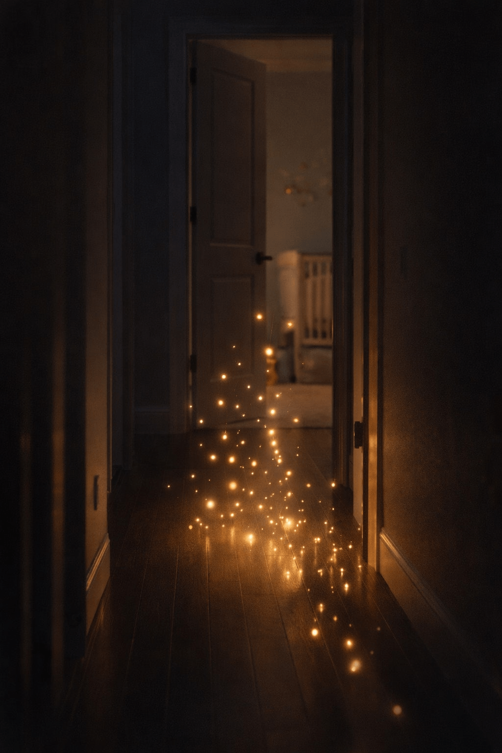 En la entrada de la habitación de Baby José, desde el piso hacia el marco de la puerta, subían luces.
